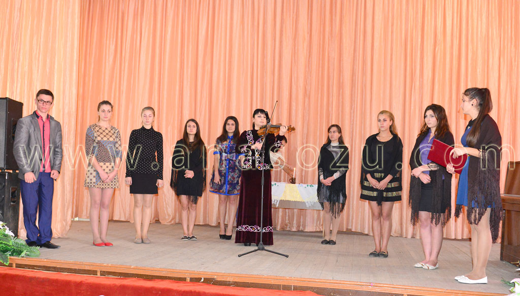 “REKVİEM” kiyadın prezentaţiyası başladı sţenadan garip bir kemençä havasınnan (kemençedä çaldı kolecin muzıkada üüredicisi Natalya Stepanovna TOMAYLI), nedän sora, üürencilär okudular avtorunun “Aaçlık” peetini hem “REKVİEM” kiyadından kimi sözleri.